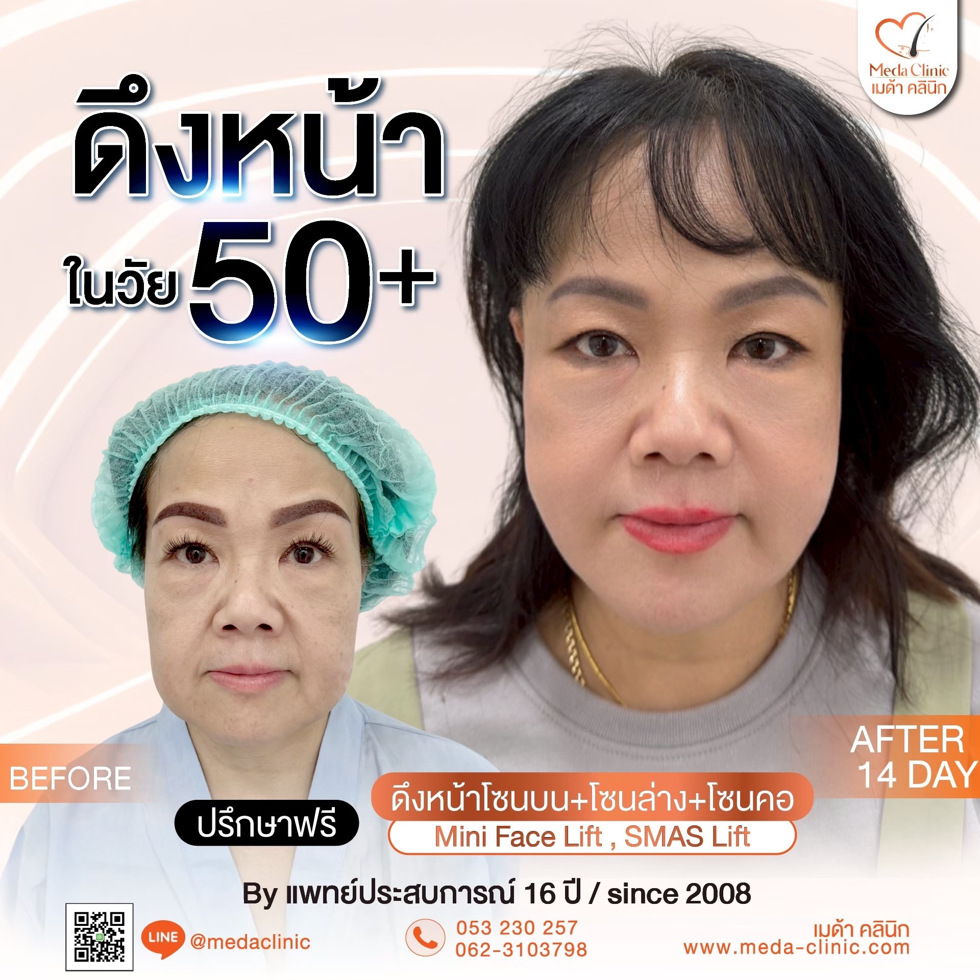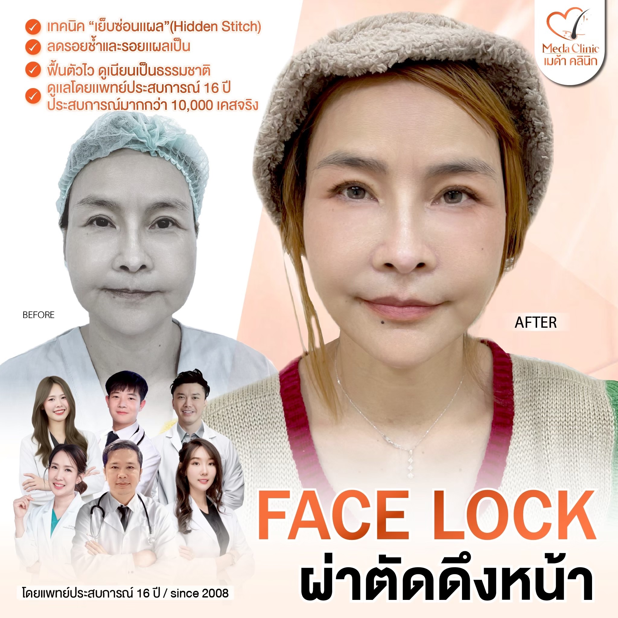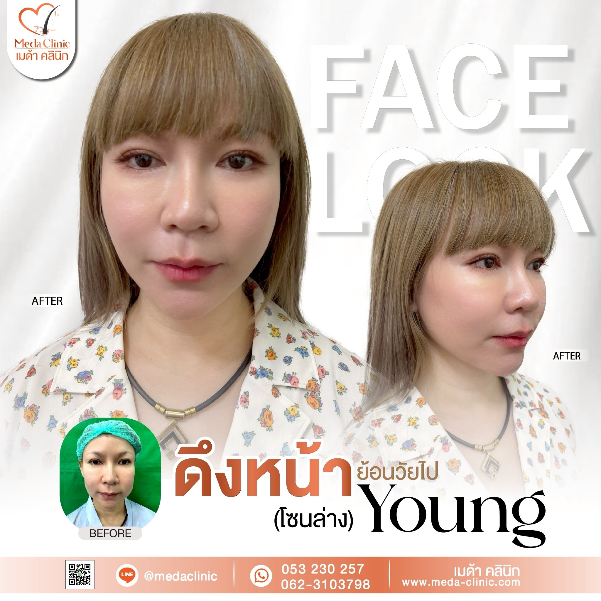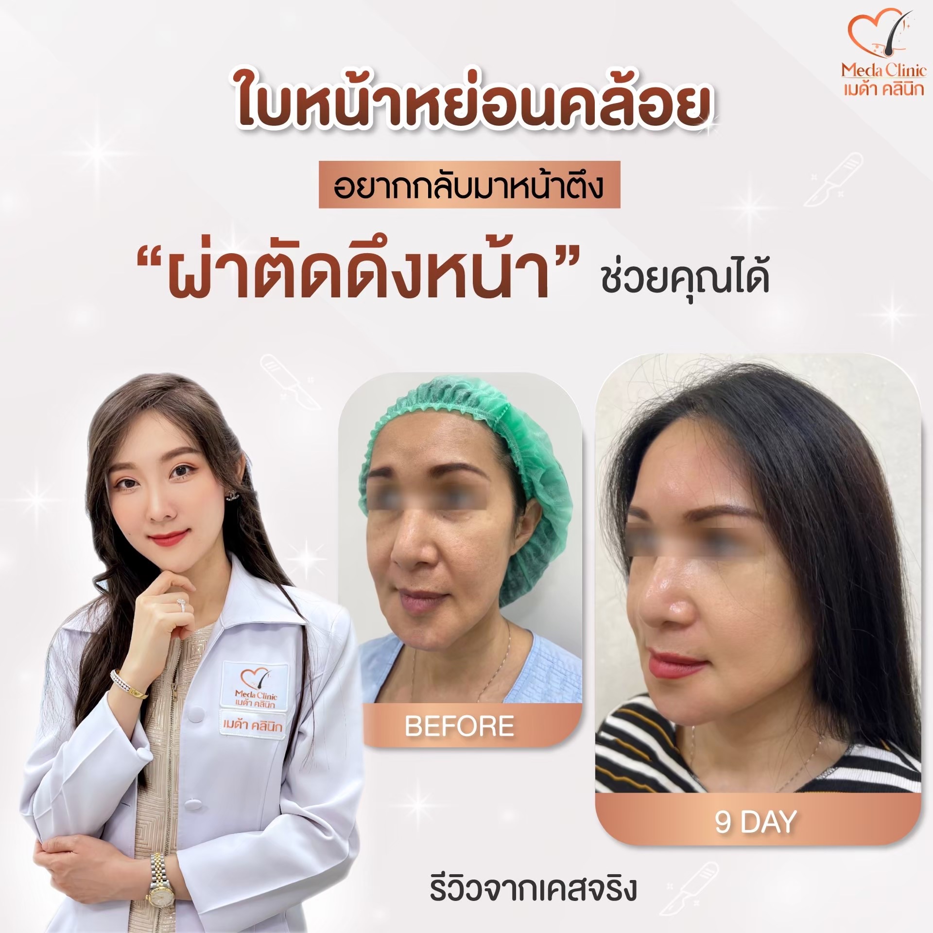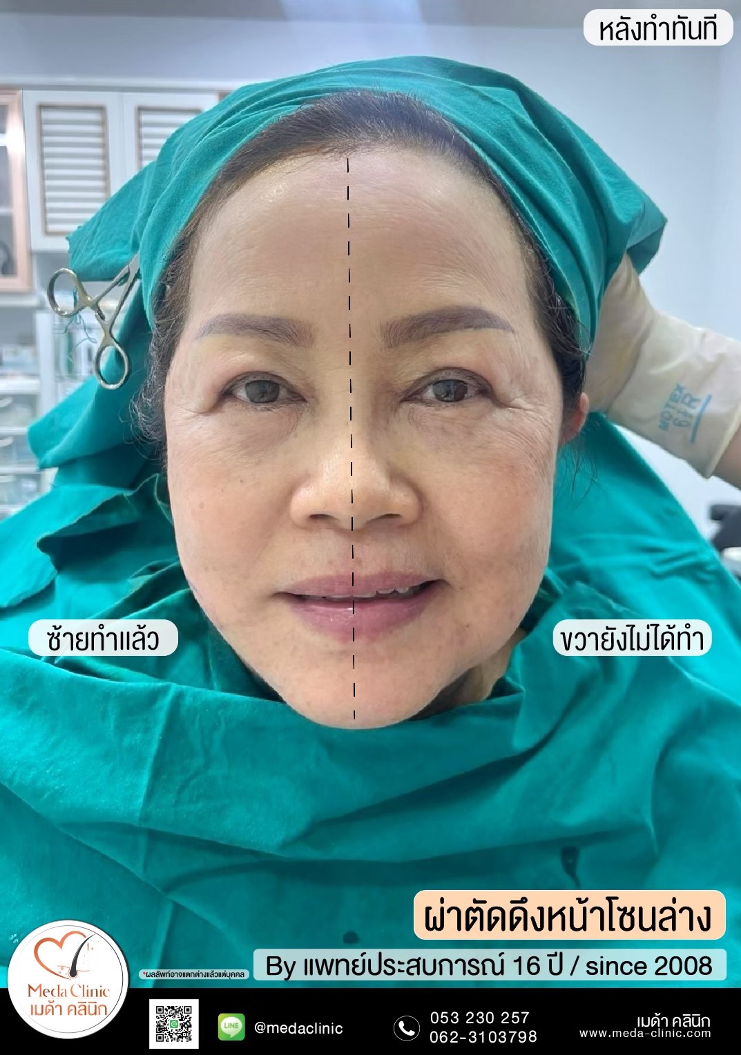 • ผ่าตัดดึงหน้าอยู่ได้นานกี่ปี? * คำแนะนำ: โดยทั่วไปผลลัพธ์จะอยู่ได้ประมาณ 7-10 ปี ขึ้นอยู่กับการดูแลตัวเองและสภาพผิวเดิม แต่ใบหน้าจะดูเด็กกว่าอายุจริงเสมอ